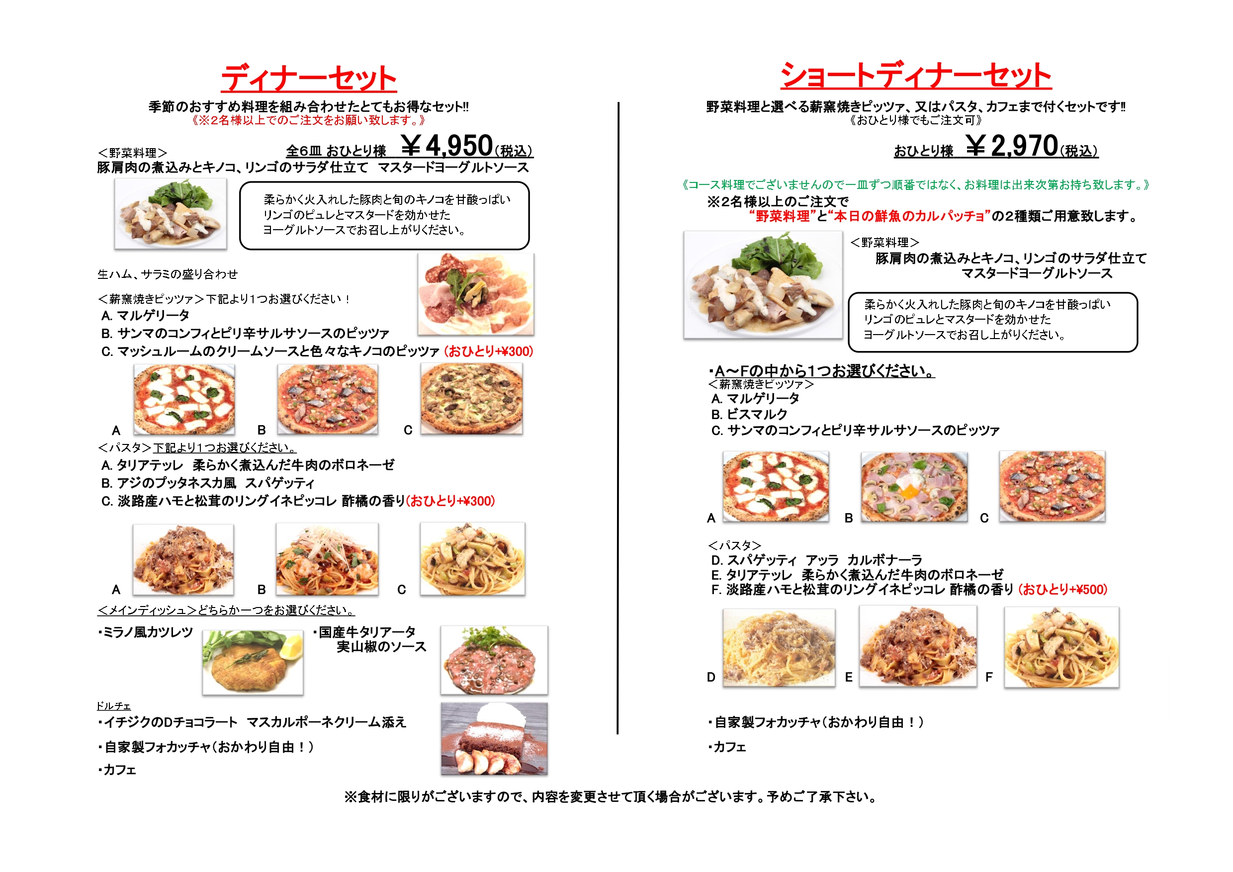 (食材の入り具合により一部変更になっているお料理もございますのでご了承ください。)